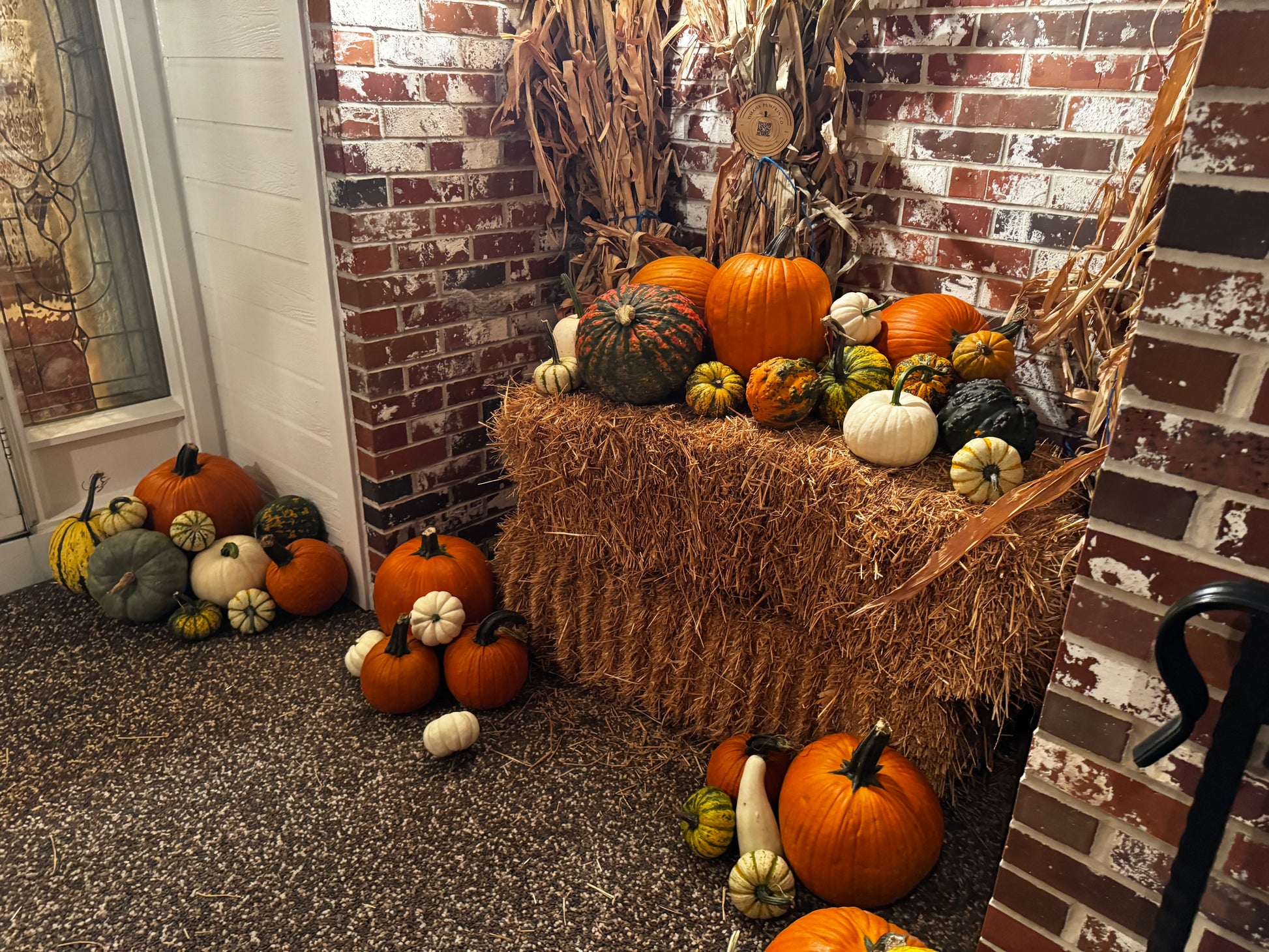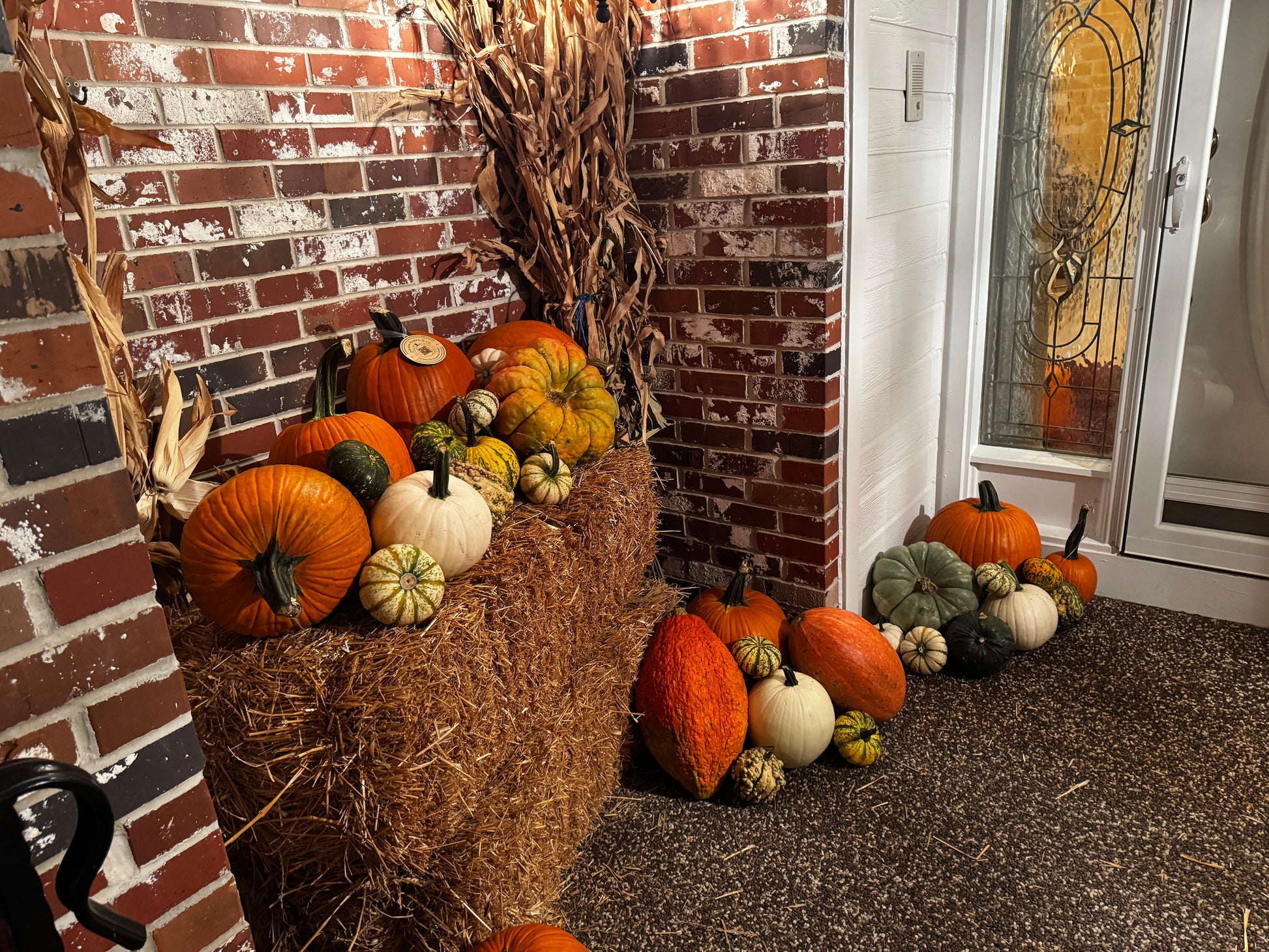 The Autumn Bounty Package creates a porchscape that embraces the spirit of fall. You'll receive a festive collection of 2 jumbo pumpkins, 2 hay or straw bales, 70 pumpkins in a variety of shapes, colors, and sizes, and 75+ mini pumpkins and gourds. Share your vision, or let us craft an impressive arrangement that will captivate every passerby.